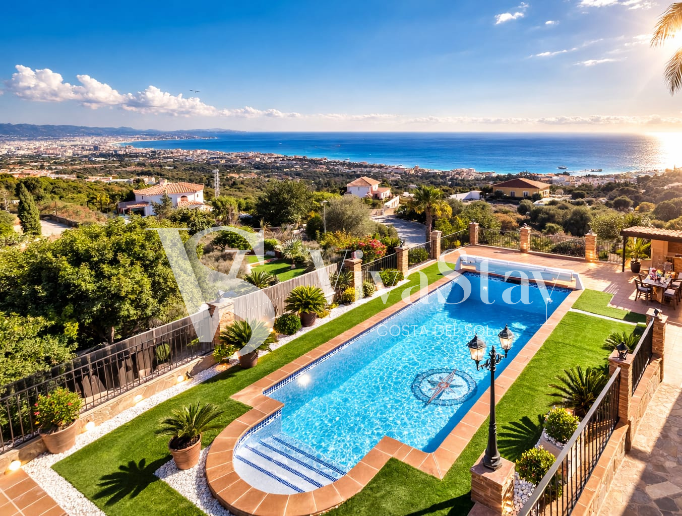Avec environ 900 m² construits, cette propriété impressionnante offre des vues panoramiques sur la mer et la côte à vous couper le souffle. Profitez de l’espace offert par ses 6 chambres et 4 salles de bains complètes, dont une suite parentale luxueuse équipée d’une douche à jet et d’une baignoire balnéo XL.