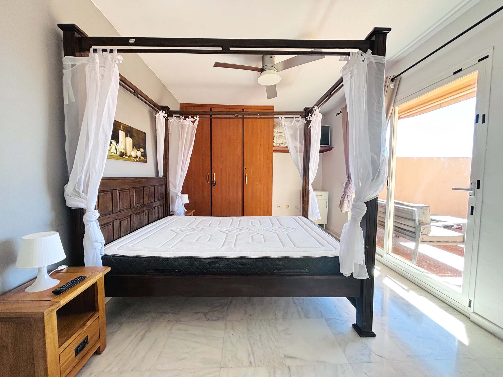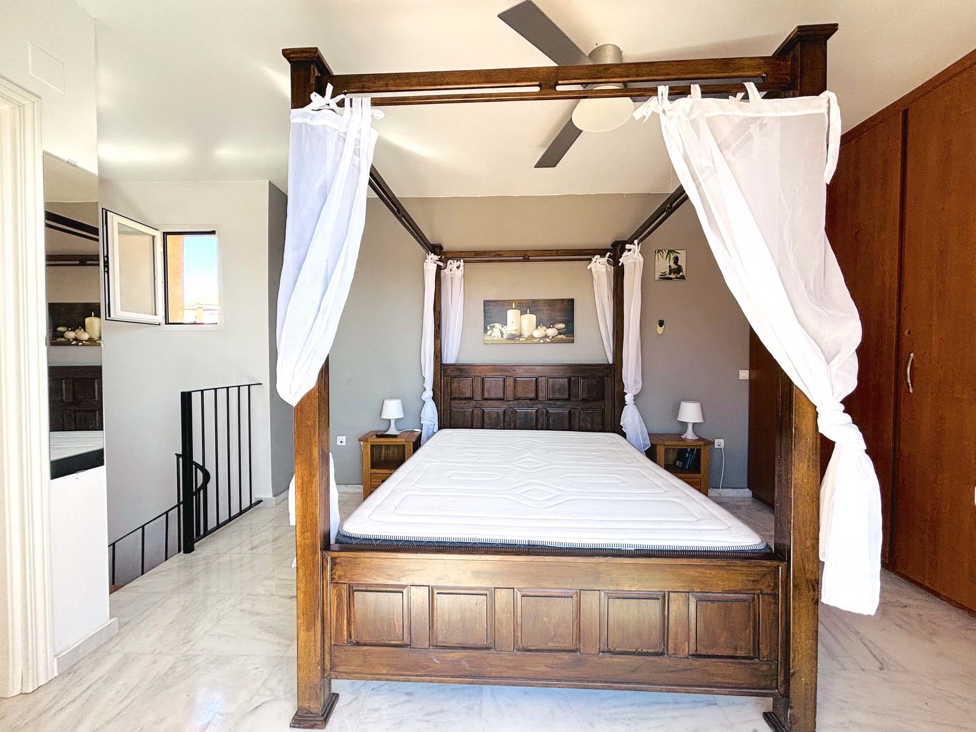 En la segunda planta se encuentra el dormitorio principal, bastante amplio, con baño en suite y una bonita terraza con vistas al mar y al campo de golf.