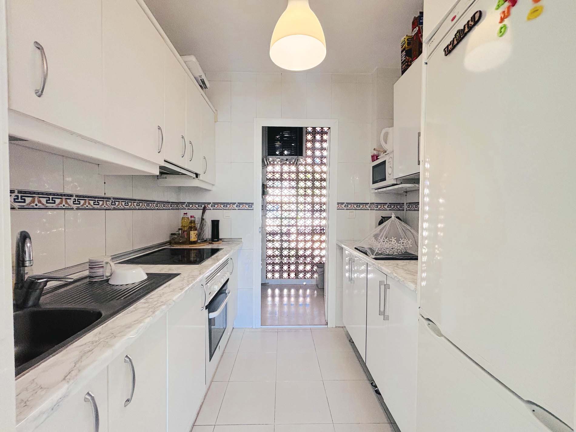 En la primera planta se encuentra el salón con comedor que da a una bonita terraza orientada al suroeste con bonitas vistas al campo de golf. La cocina está al lado, totalmente equipada con electrodomésticos. Hay dos dormitorios y un baño con bañera.