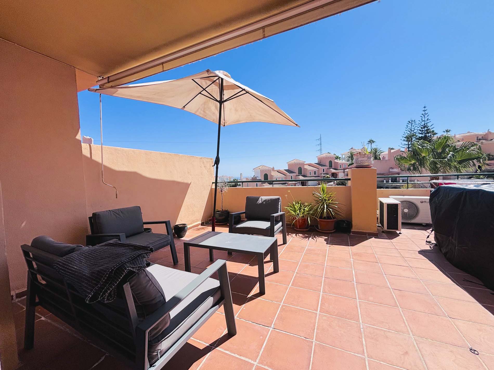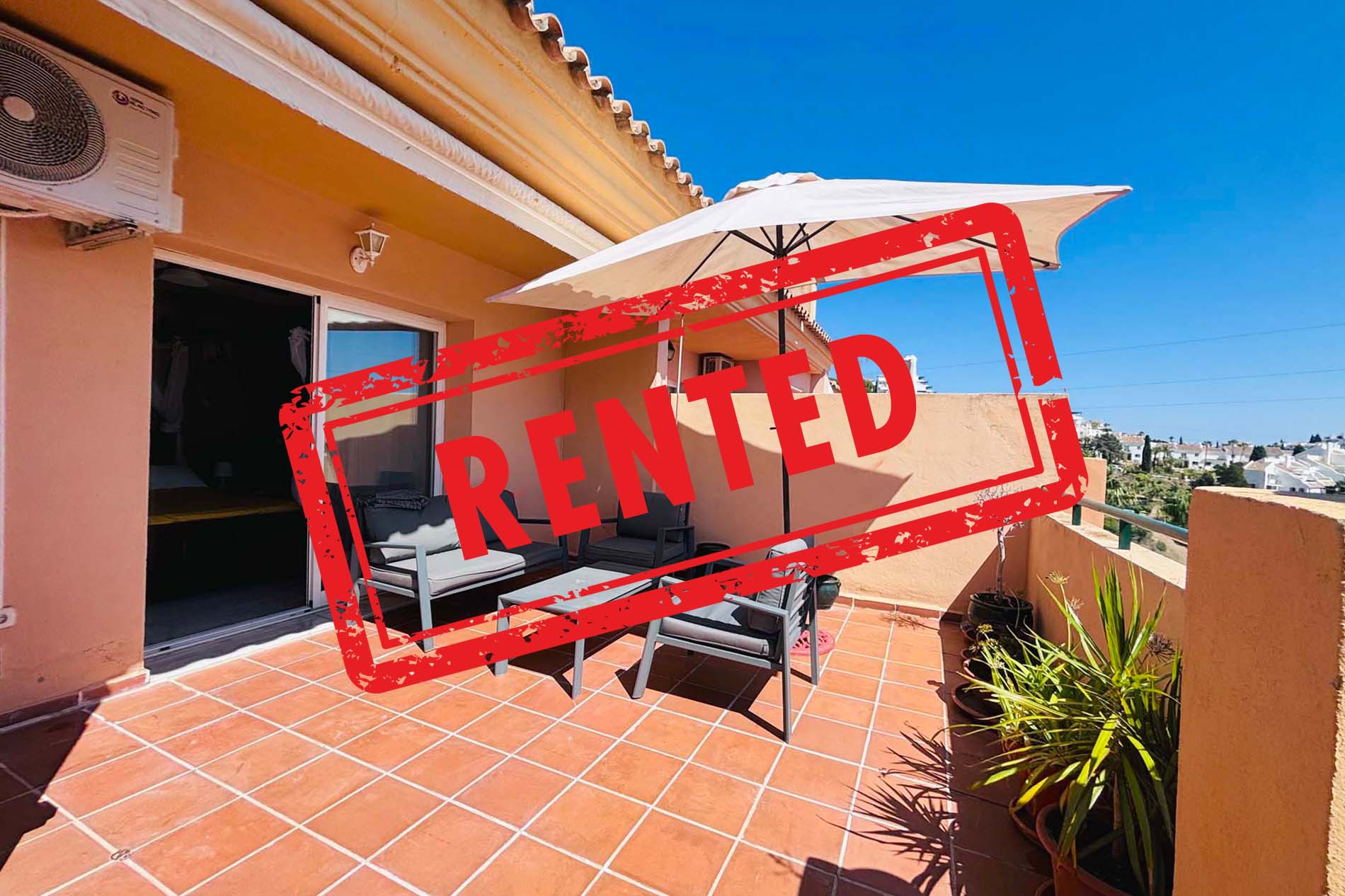 Bonito dúplex de 3 dormitorios con vistas al campo de golf y al mar en alquiler de larga temporada en Mijas Costa.