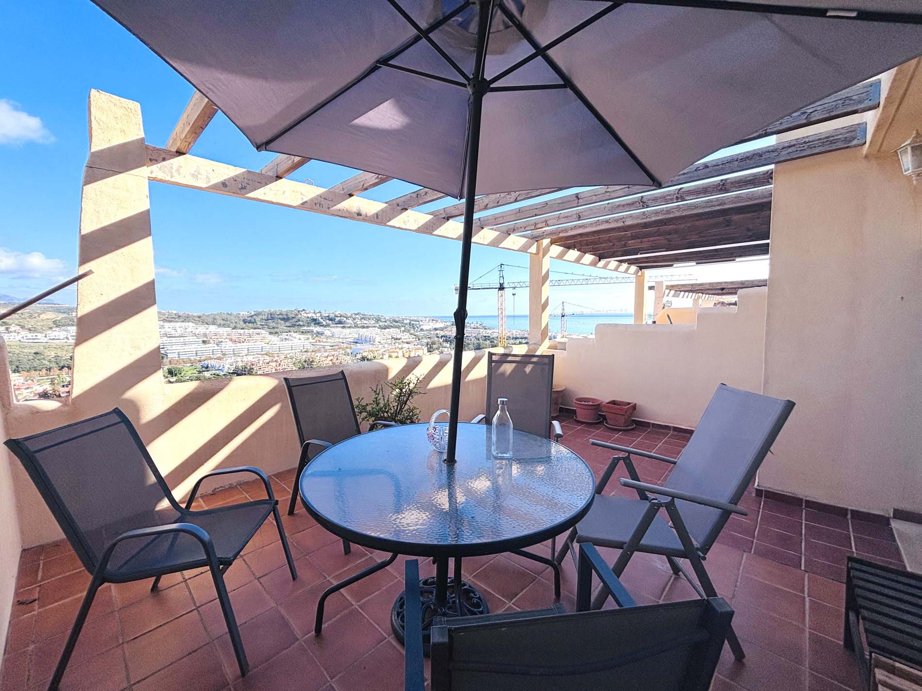 Amplio y elegante ático dúplex de 2 dormitorios con vistas panorámicas al mar y a la montaña en La Cala de Mijas.