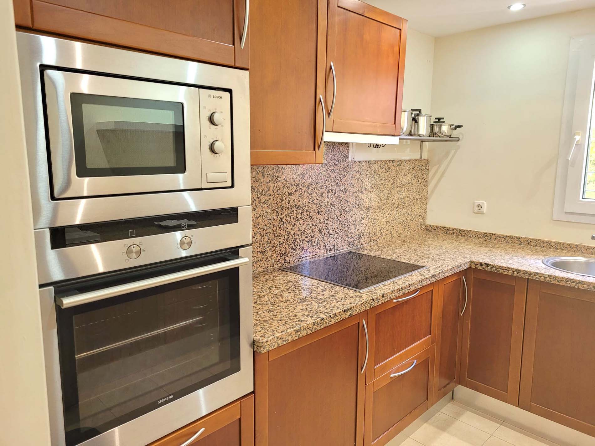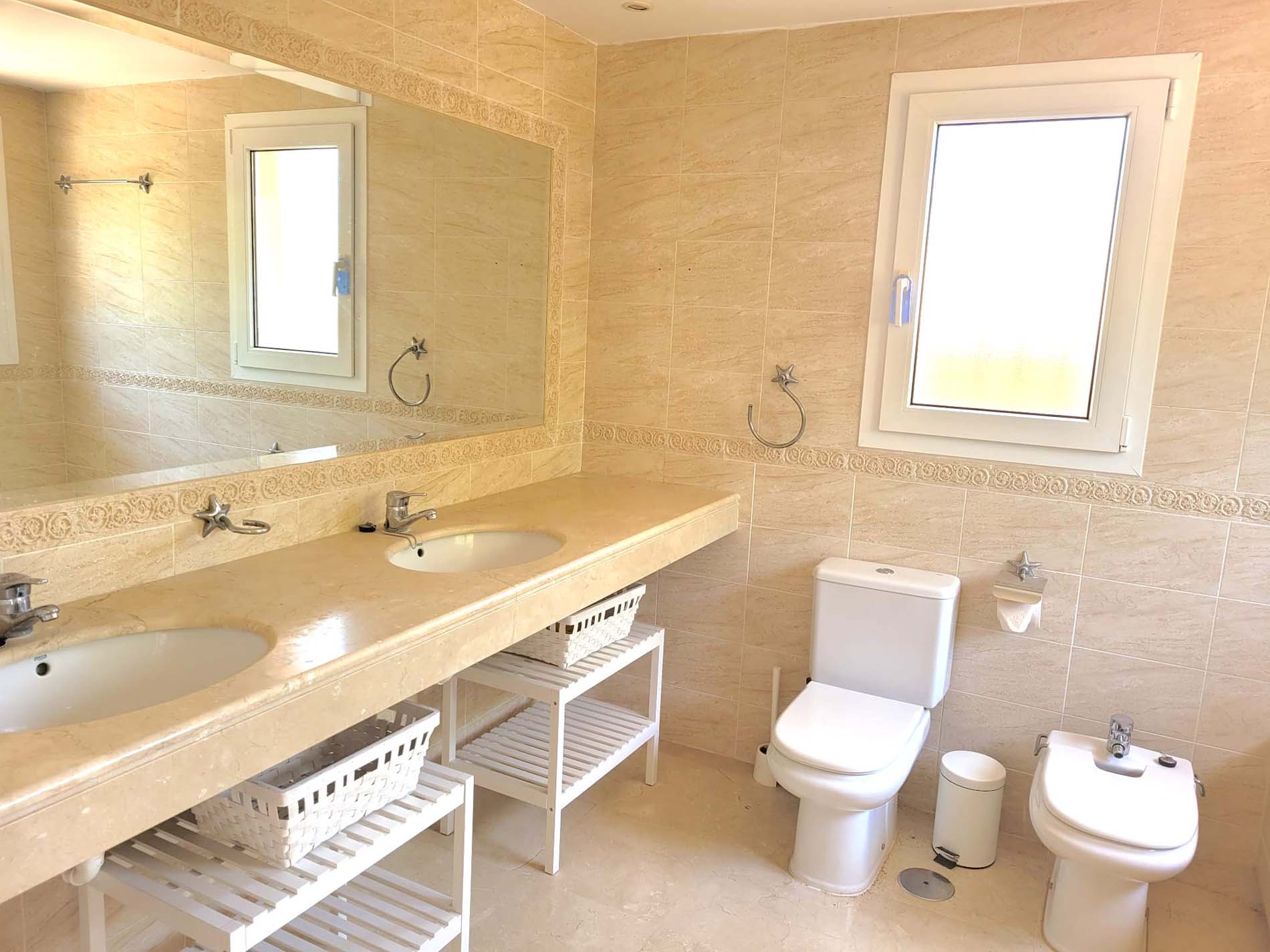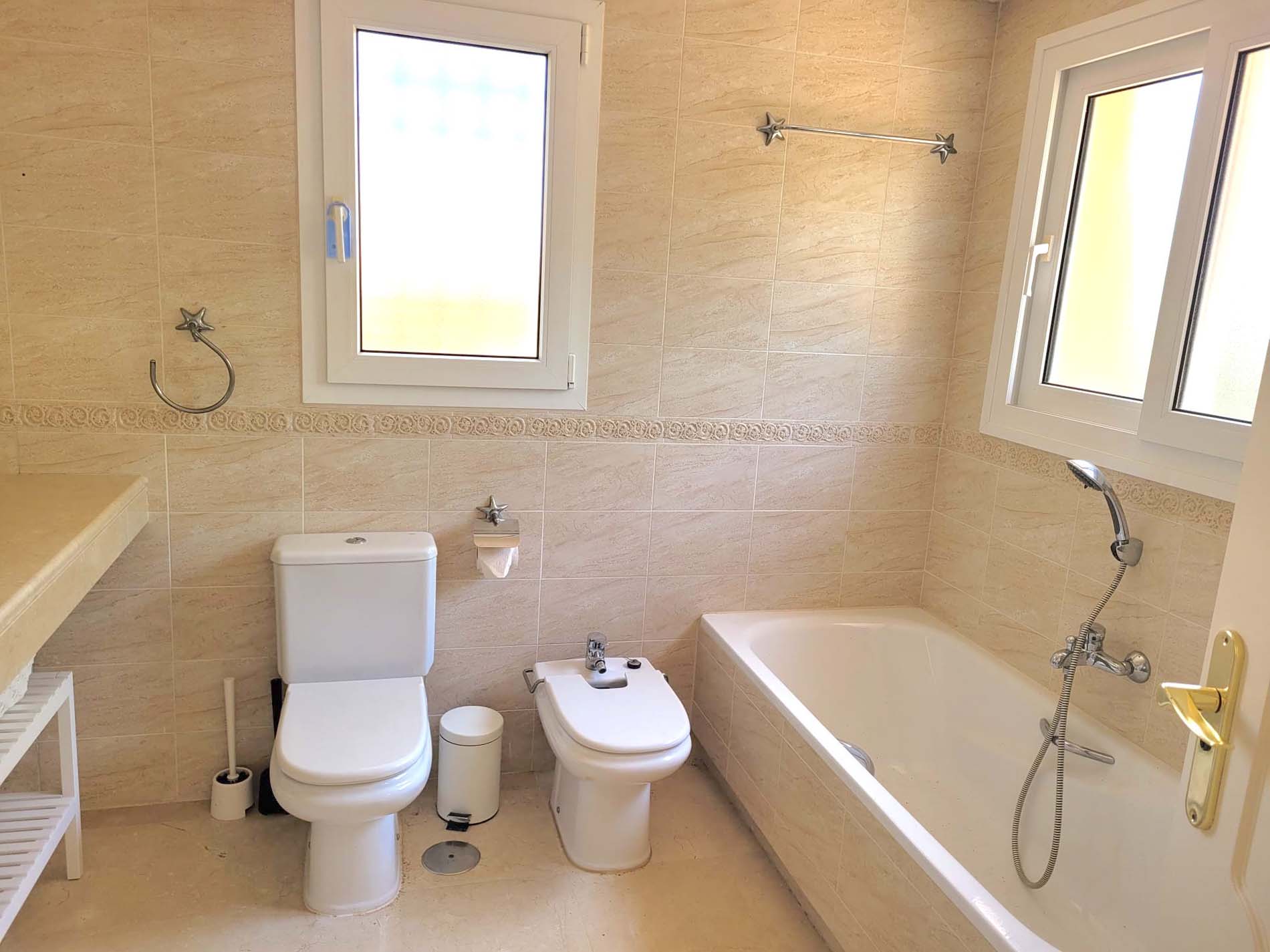 Tres cómodas habitaciones: disfrute de tres espaciosas habitaciones, cada una con armarios empotrados. El dormitorio principal cuenta con baño privado en suite, mientras que las otras dos habitaciones comparten baños bien equipados, lo que garantiza la comodidad de toda la familia.