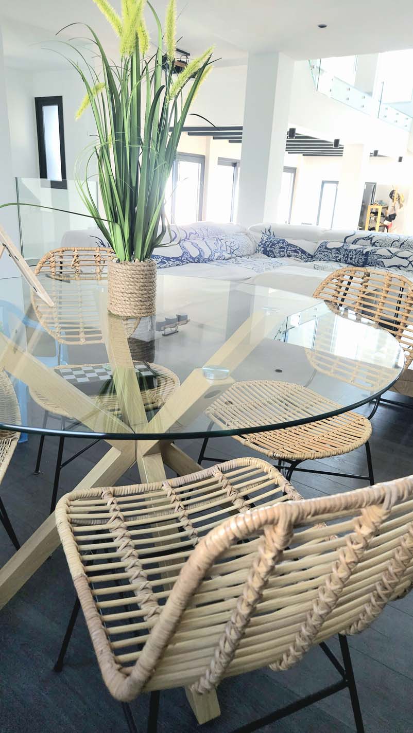 Al entrar, serás recibido por una espléndida piscina y un jacuzzi, ideales para relajarse. La zona chill out, el área de barbacoa y el elegante lecho balinés detrás de la terraza te permitirán disfrutar del mejor estilo de vida al aire libre. Además, la casa te conduce a una zona de juegos con césped artificial, perfecta para el ocio de toda la familia.