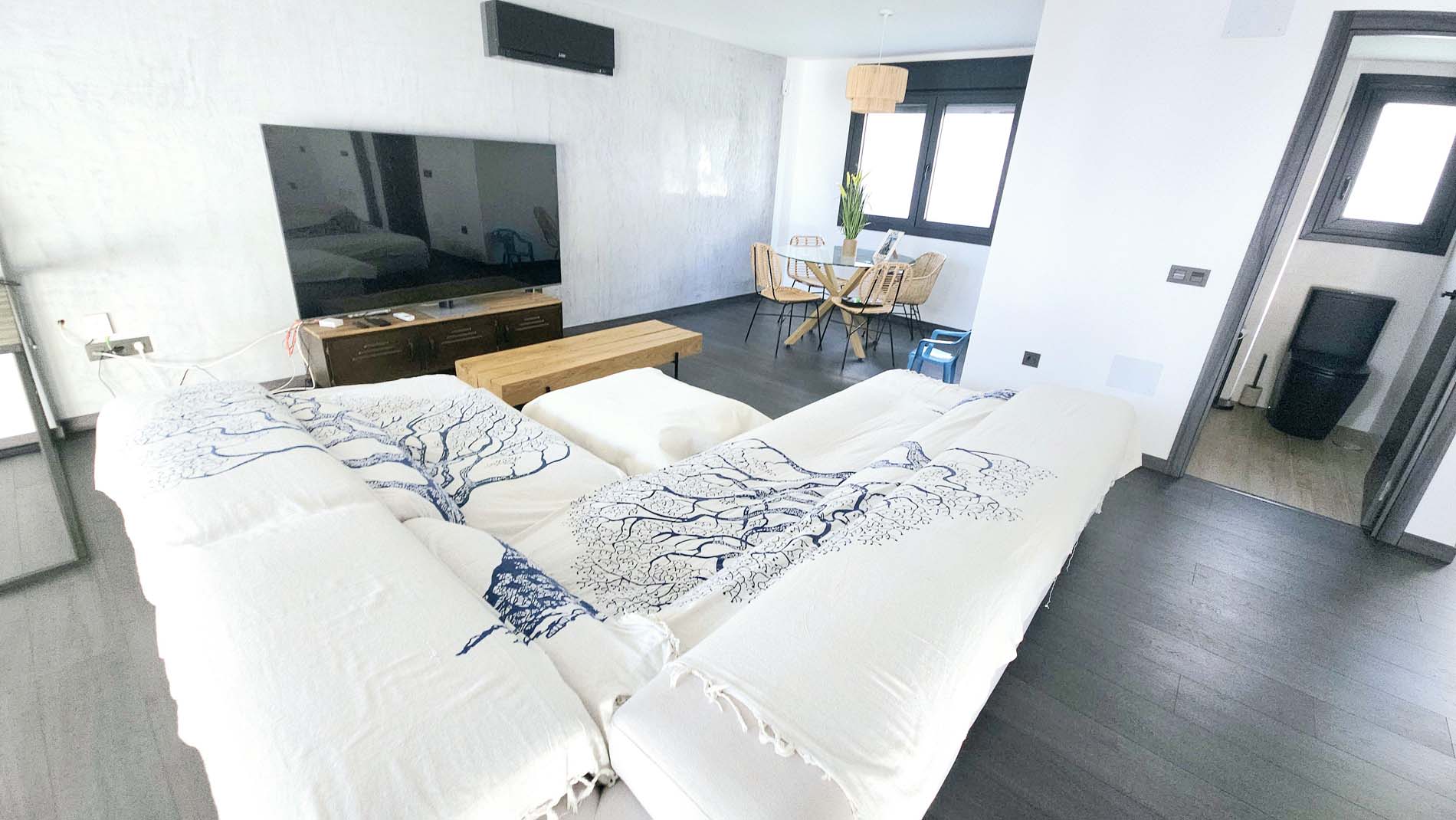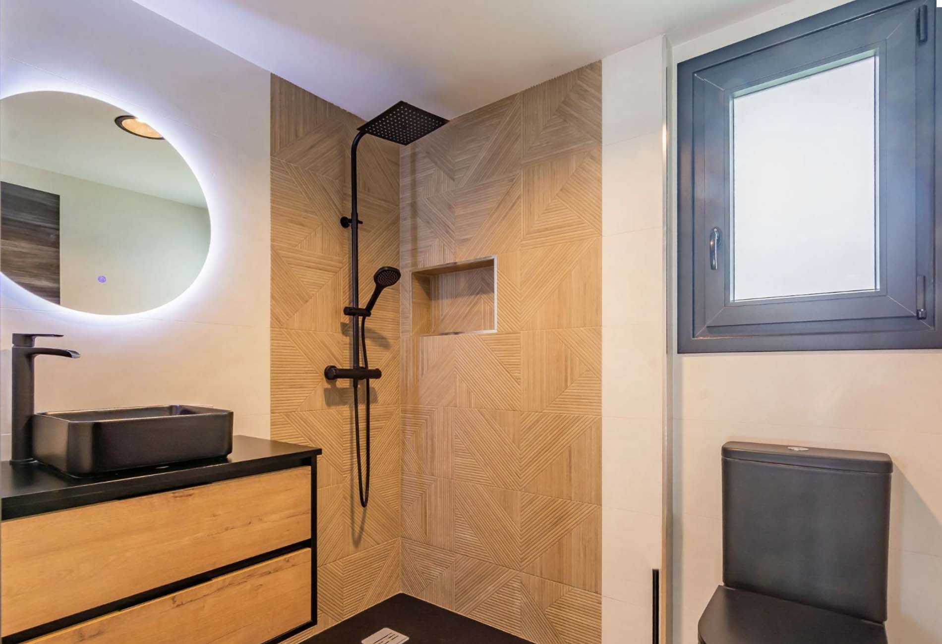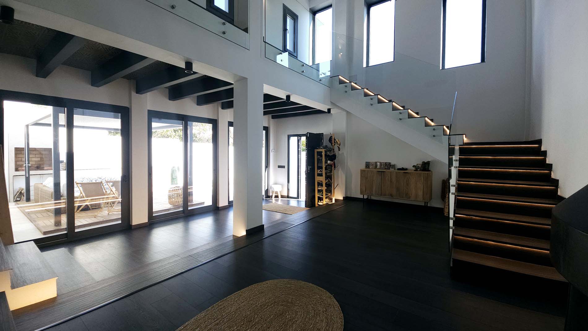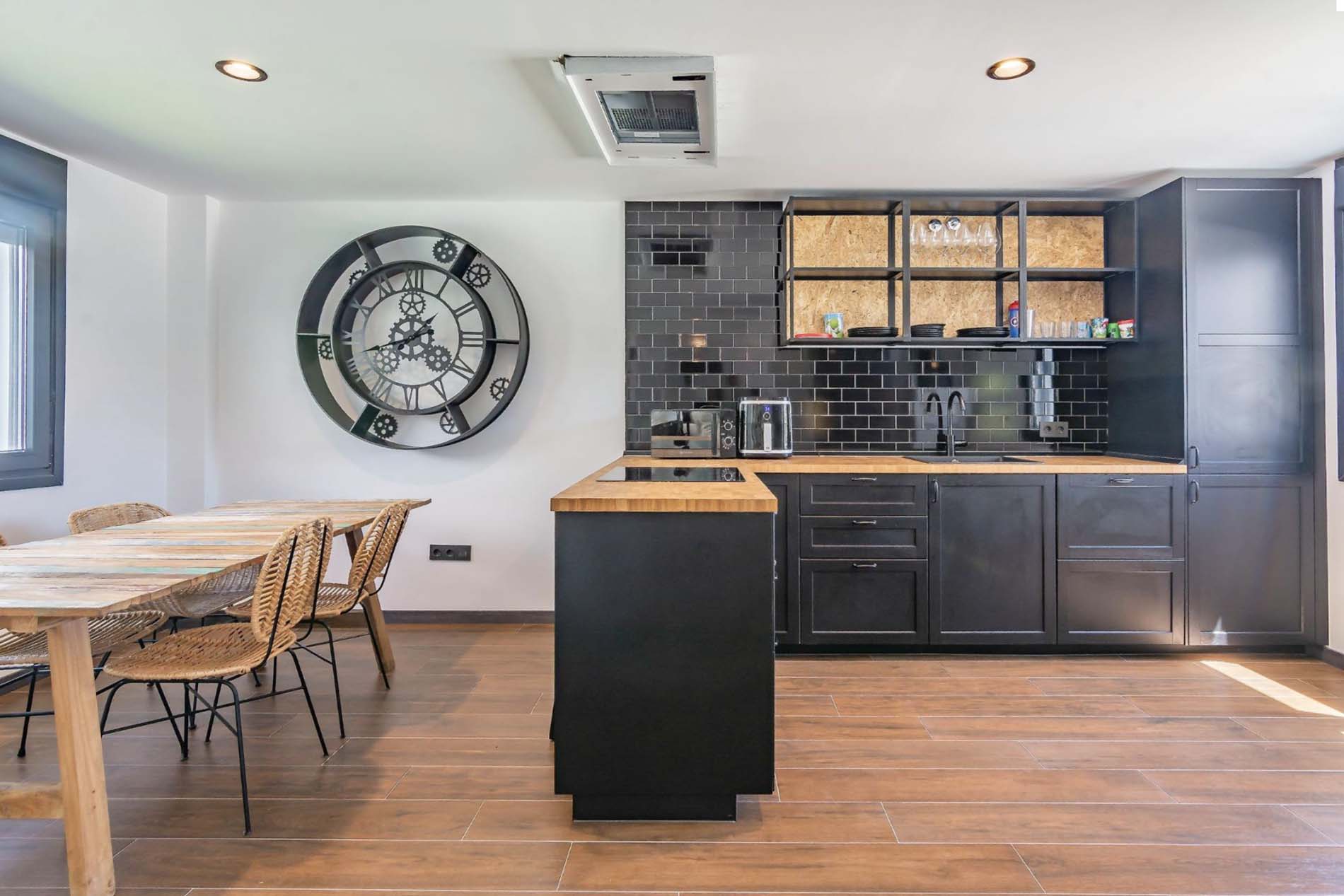 Cuenta con un portón eléctrico que desciende directamente al amplio garaje con capacidad para varios coches, ofreciendo también un espacio de almacenamiento adicional. En el interior, la casa está equipada con iluminación LED que resalta cada detalle del diseño original. Una cálida chimenea en el amplio salón-comedor que se abre a una gran cocina moderna y funcional, conectada con los espacios exteriores.
