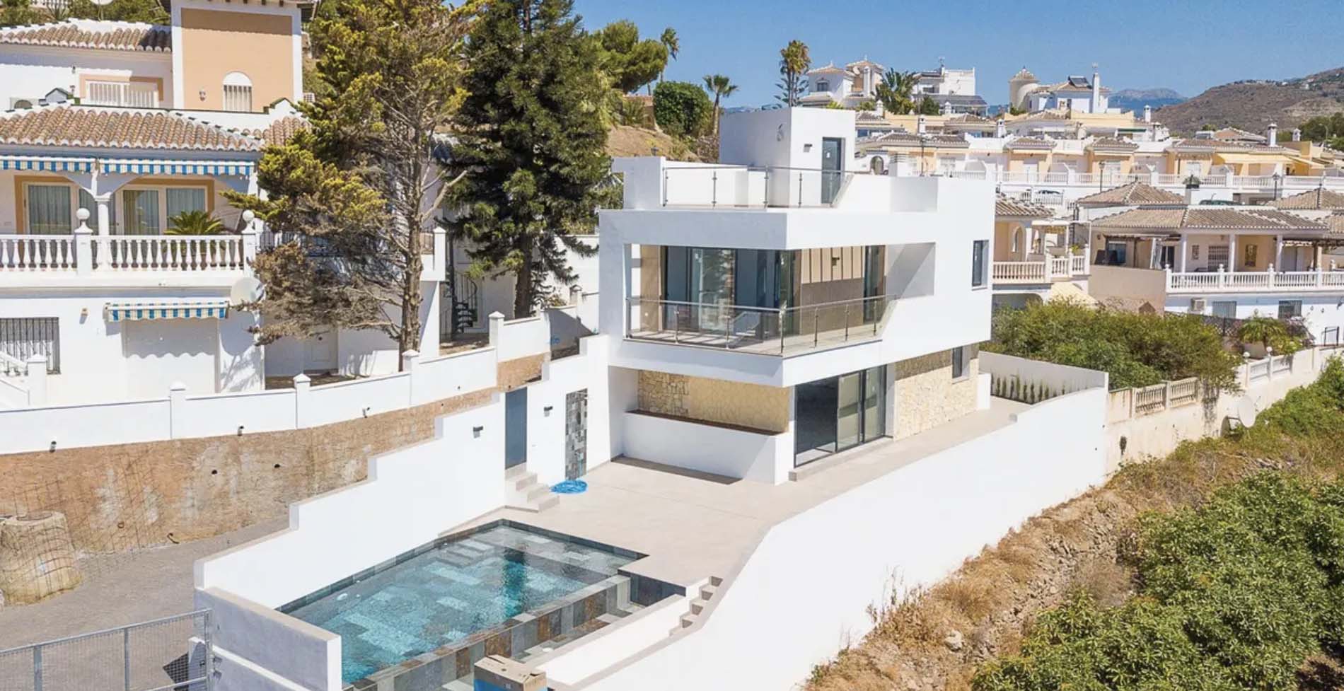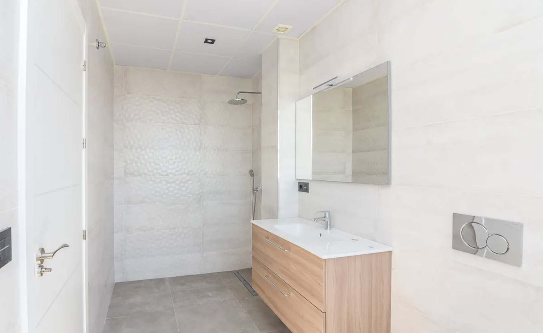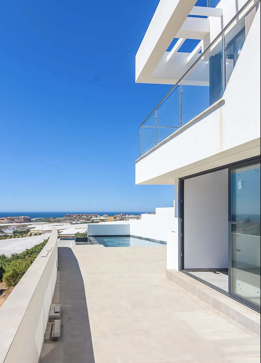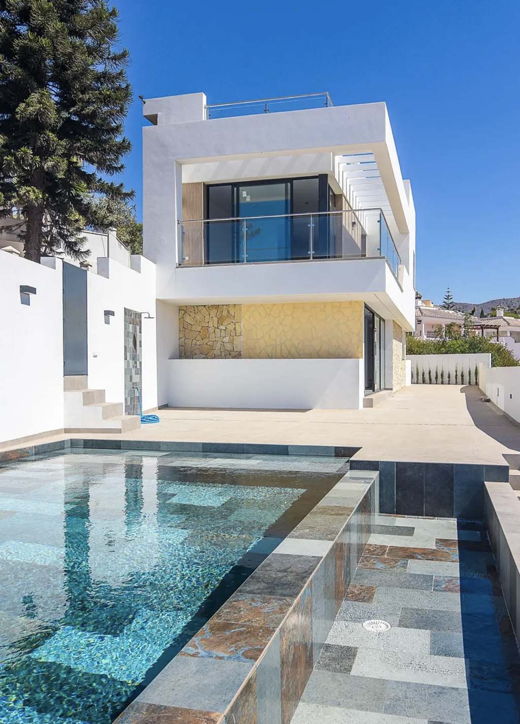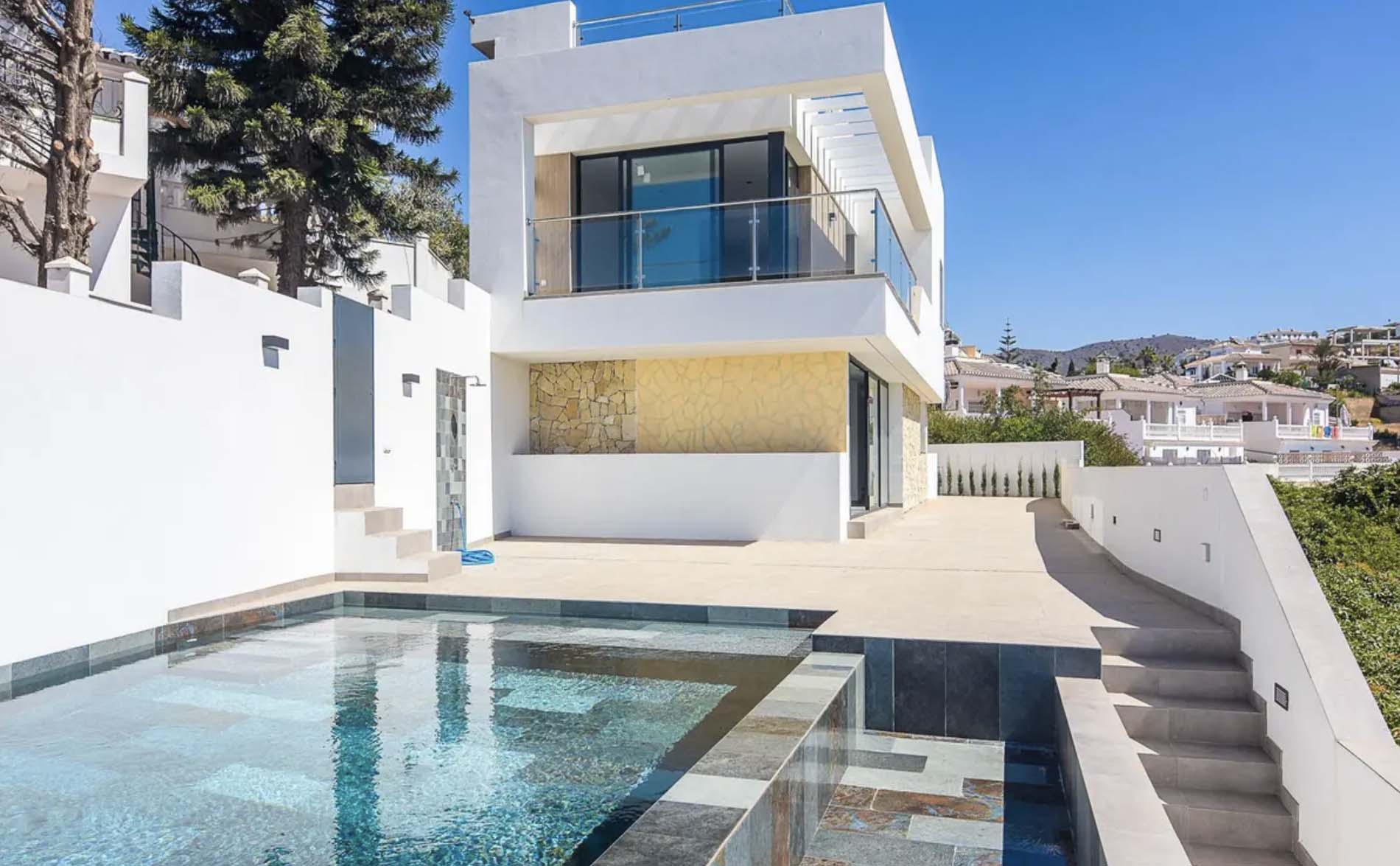 Calidades excelentes: solería de gres, acristalamiento termoacústico, sistema de aire acondicionado y calefacción, placas solares, piscina privada con agua salina, cocina amueblada, puertas de garaje automáticas, persianas automáticas, etc.