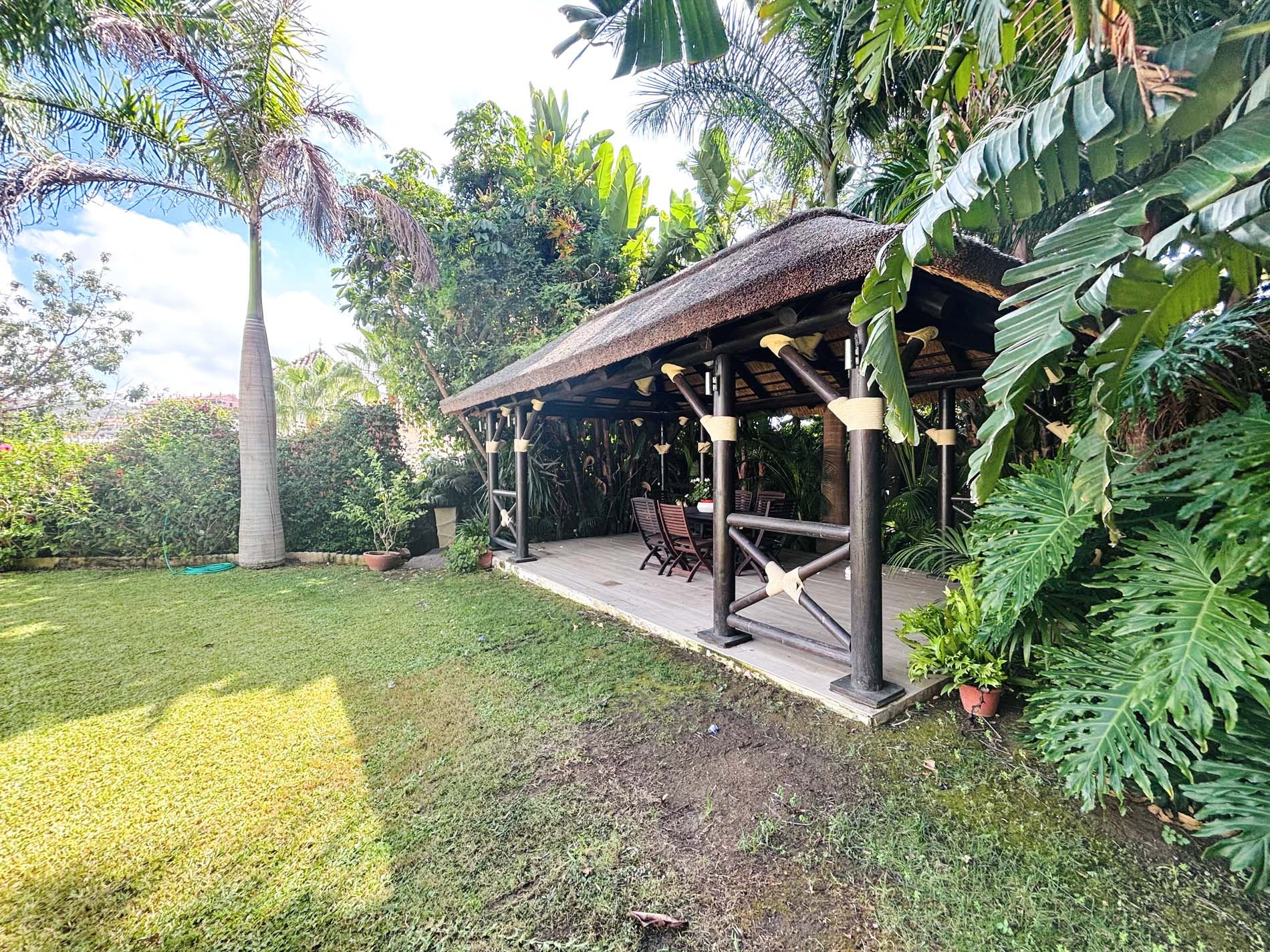 Gran parcela: Ubicada en una generosa parcela de 1.400 m2, la propiedad cuenta con una gran piscina, un tradicional «rancho» para barbacoas y una variedad de árboles y plantas maduros que crean un ambiente tranquilo y privado.