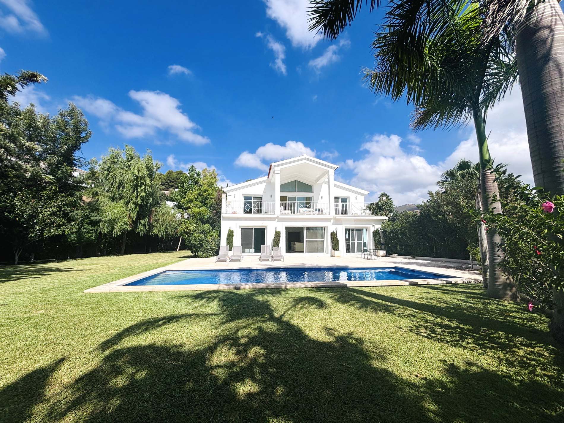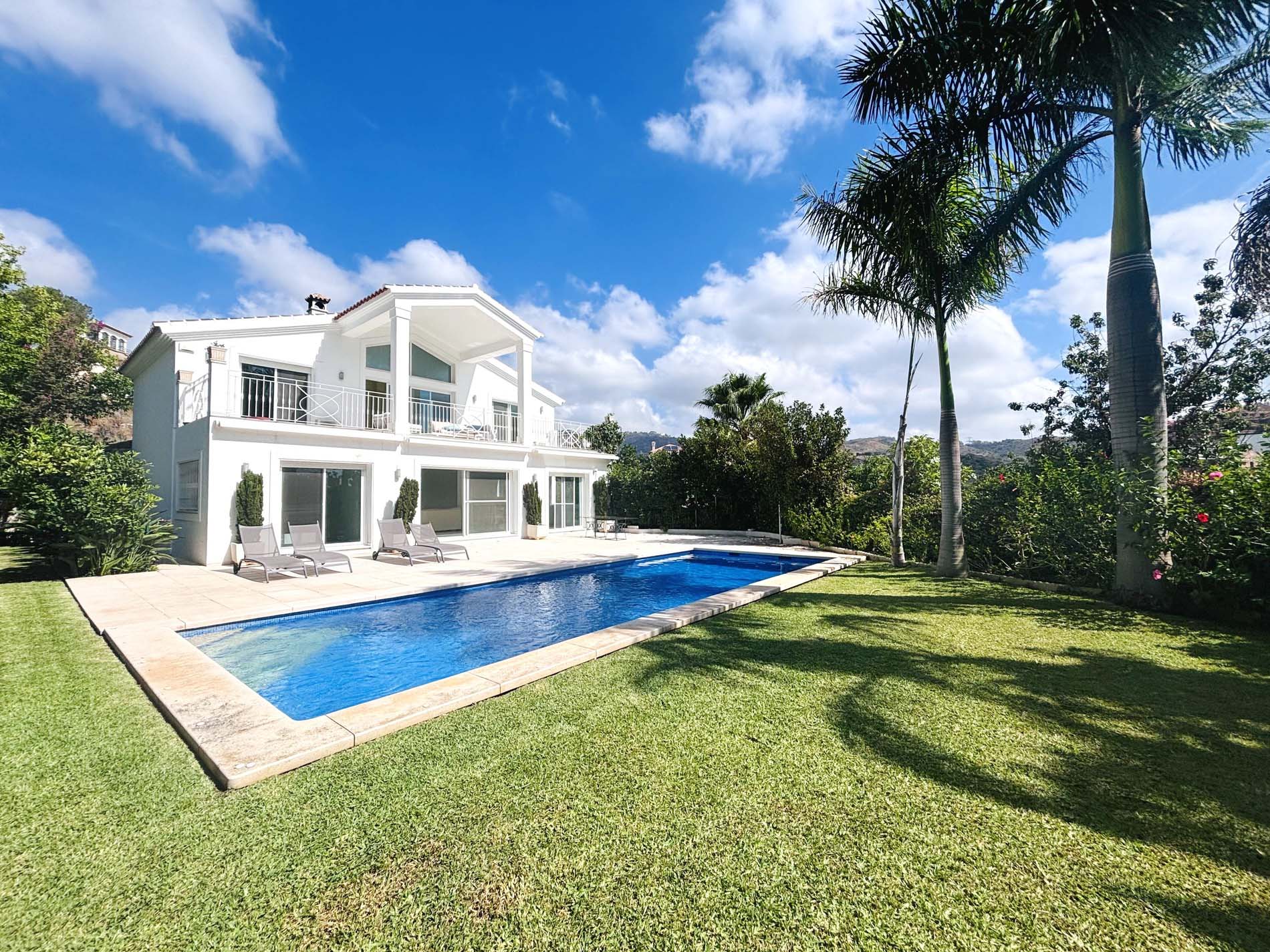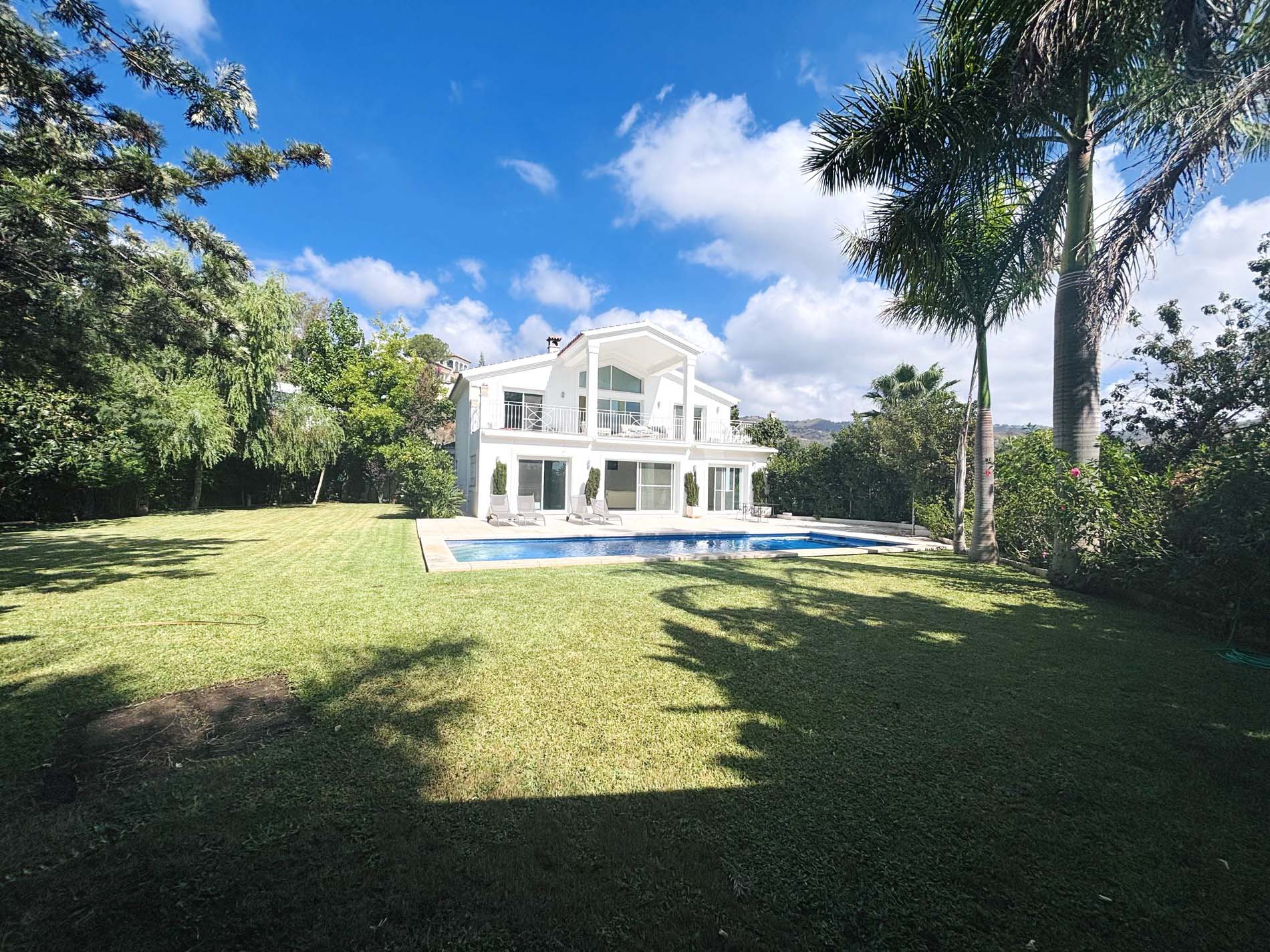 Villa de lujo sin amueblar de 5 dormitorios con piscina y amplio patio en alquiler a largo plazo en Elviria, Marbella Este.