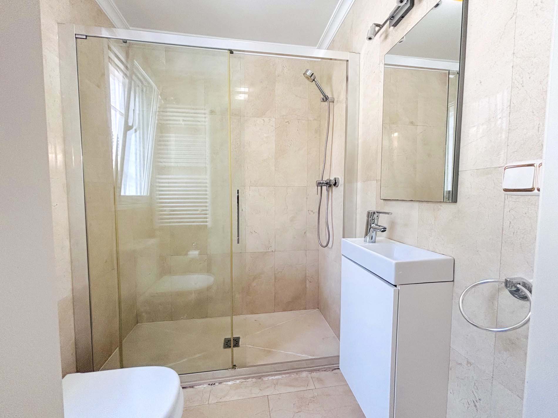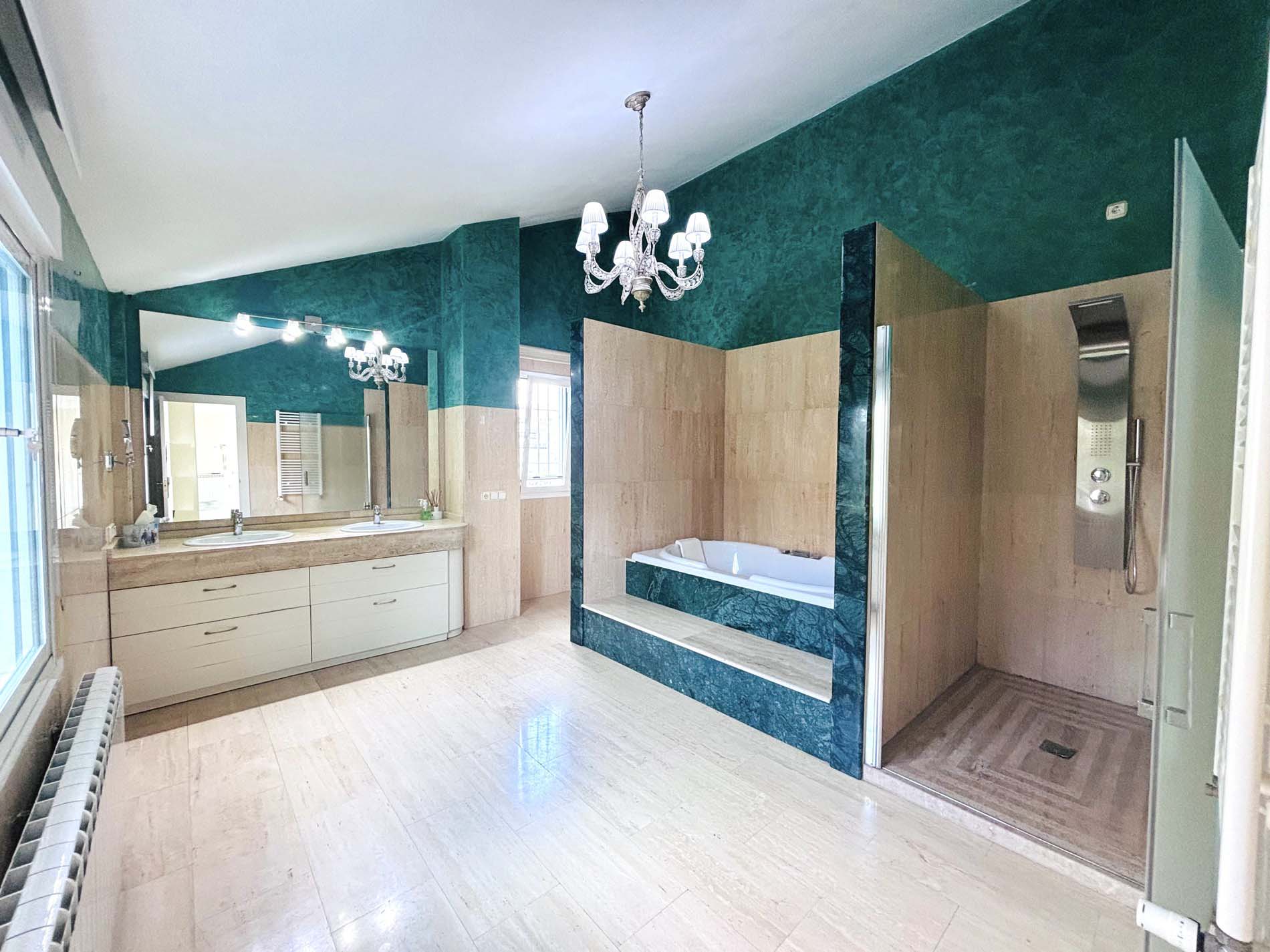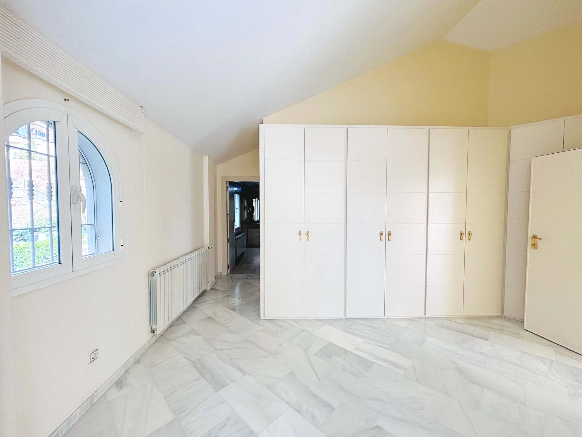 Dormitorios y baños: La villa ofrece 5 dormitorios, dos de ellos en la planta principal. El dormitorio principal es amplio, con armarios empotrados y acceso directo a la terraza, así como un baño adyacente. El segundo dormitorio de esta planta tiene un baño en suite.