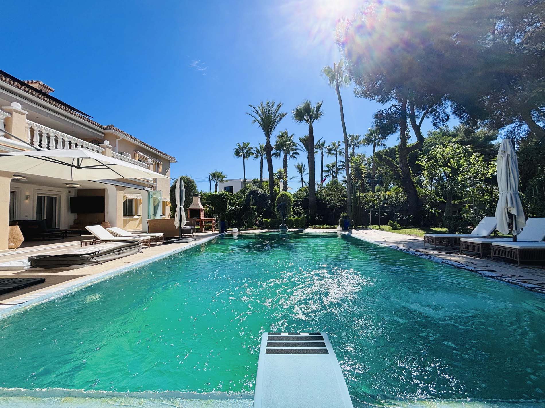 Excepcional villa de lujo contemporánea de 5 dormitorios con piscina privada y jardín en alquiler en Marbesa, Marbella Este.