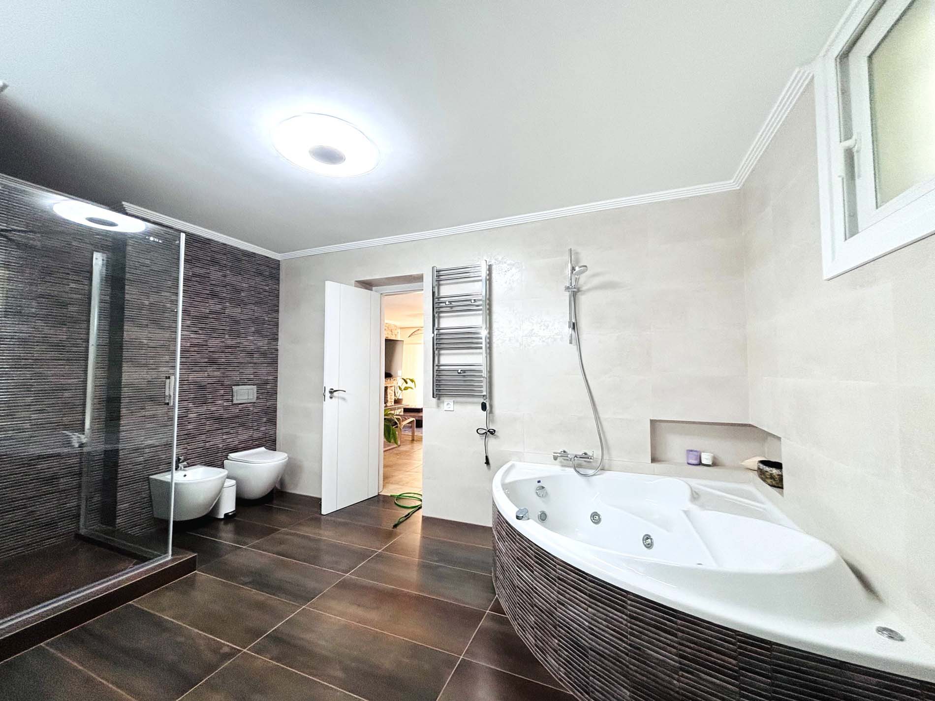 Se han instalado paneles solares para reducir significativamente las facturas de electricidad (estimadas en sólo 150 € al mes), mientras que la calefacción por suelo radiante garantiza el confort durante todo el año. También se proporciona una estación de carga para vehículos eléctricos.